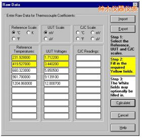 可輸入或?qū)胄?zhǔn)的電阻或電壓原始數(shù)據(jù)。TableWare